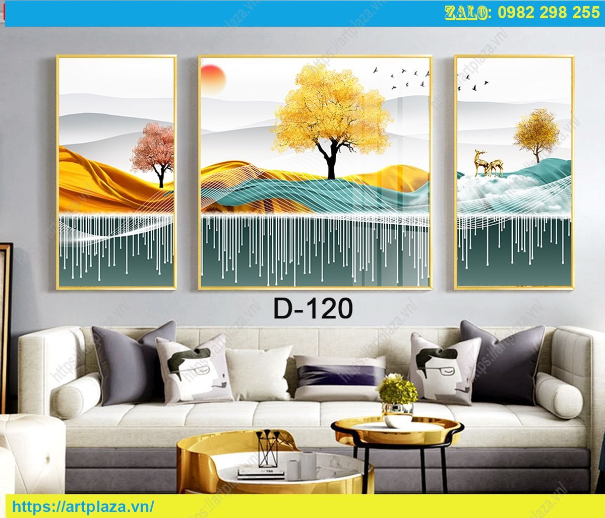 Tranh tráng gương bộ 3 hiện đại 120 là một trong những mẫu tranh phong cảnh đẹp