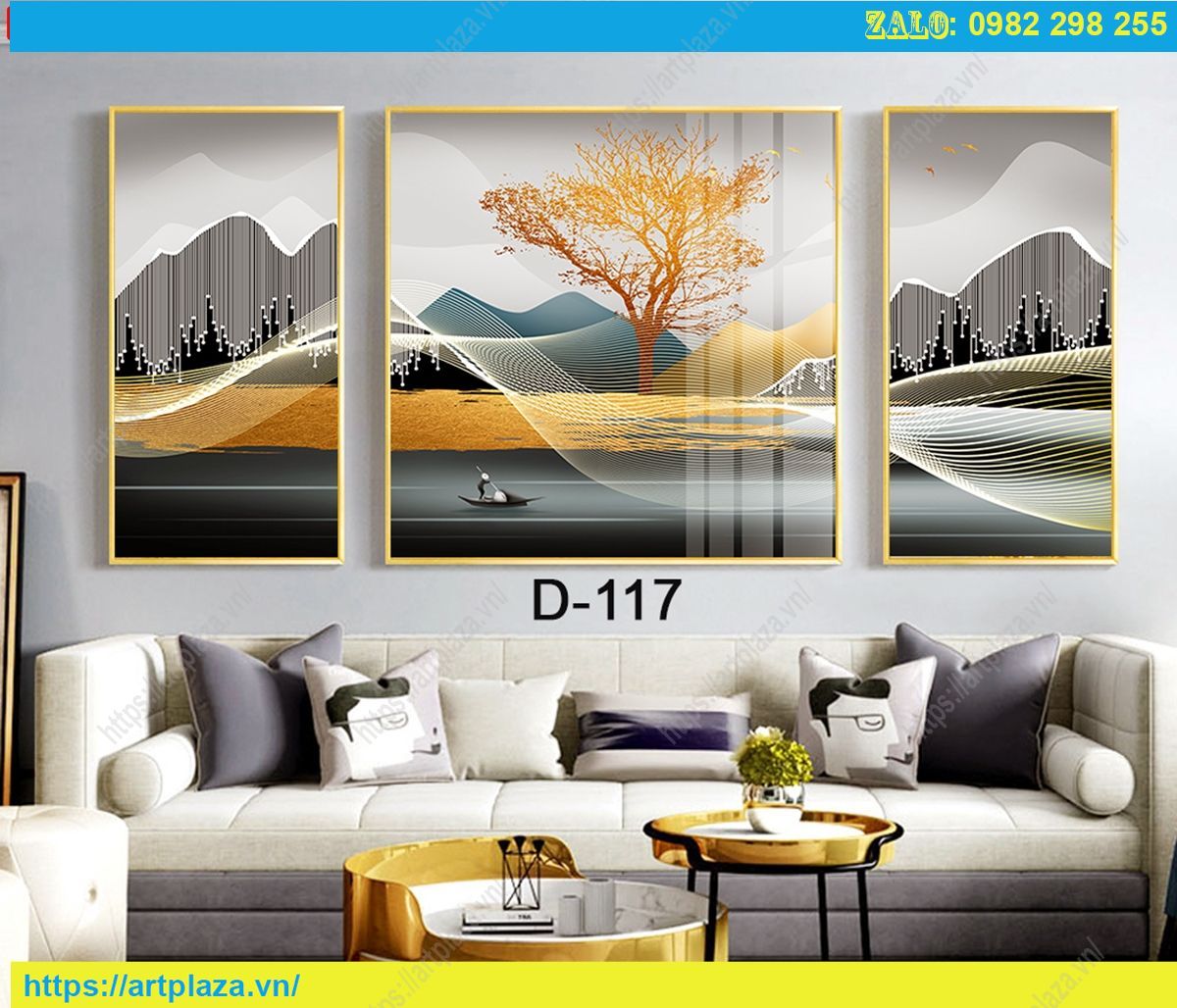 Tranh tráng gương bộ 3 hiện đại 117 là một trong những mẫu tranh phong cảnh đẹp
