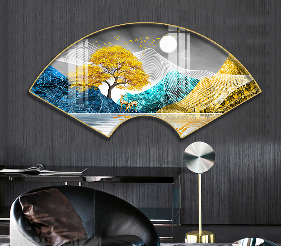 TAGtranh tráng gươngtranh tráng gương hình quạttranh treo tườngkhung tranhtranh hiện đạitranh canvas hình quạt