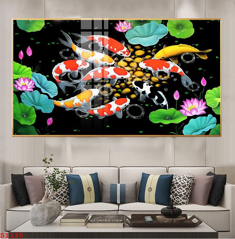 TRANH TRÁNG GƯƠNG PHONG THỦY CÁ CHÉP HOA SEN S1135
