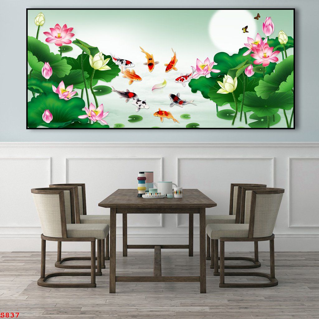 TRANH TRÁNG GƯƠNG PHONG THỦY CÁ CHÉP HOA SEN S837